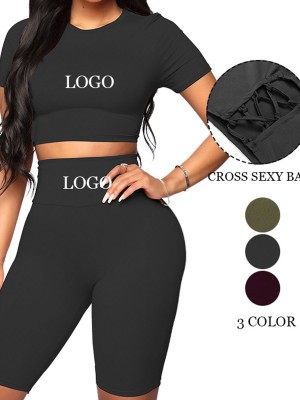 Logo Summer Short Women Workout Set SKU:YD210360-GY1