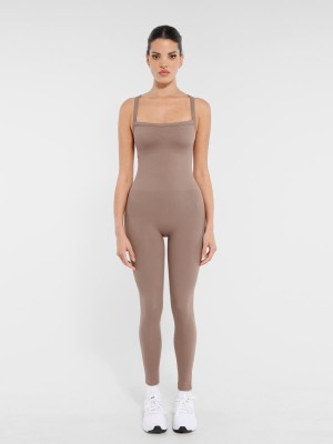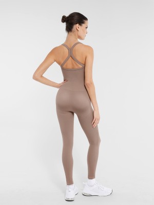 Wholesale Seamless Sports Shaping 2 in 1 Waist and Tummy Control Bra-free Jumpsuit