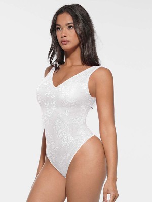 Shiny Draped Neck Shapewear Bodysuit with Built In Bra and Thong Snap Crotch