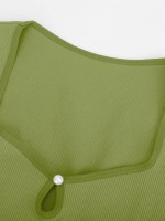 3. Sexy hollow low round neck: reveal beautiful clavicle, hollow neckline + pearl button embellishment, modify and lengthen the neck visual effect;