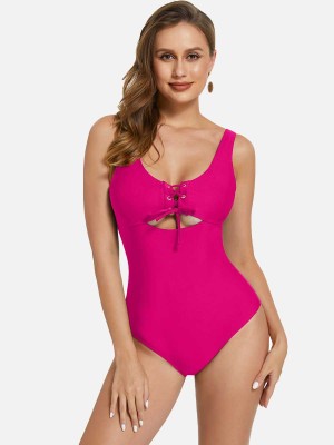 wholesale summer lacing up push up chest one piece high cut swimwear beachwear
