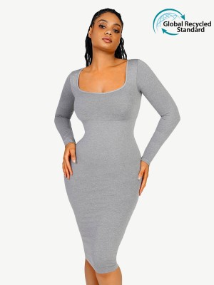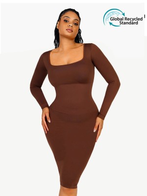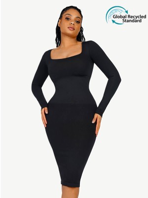 Square Neck Long Sleeve Shapewear Dress SKU:MT230197-BK1