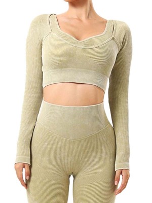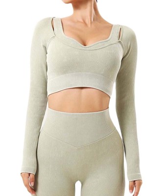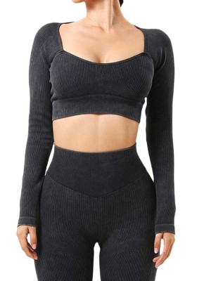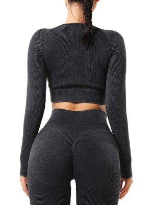 3. Round neck crop top has a thumbhole design to prevent sleeves from rolling up during activities;